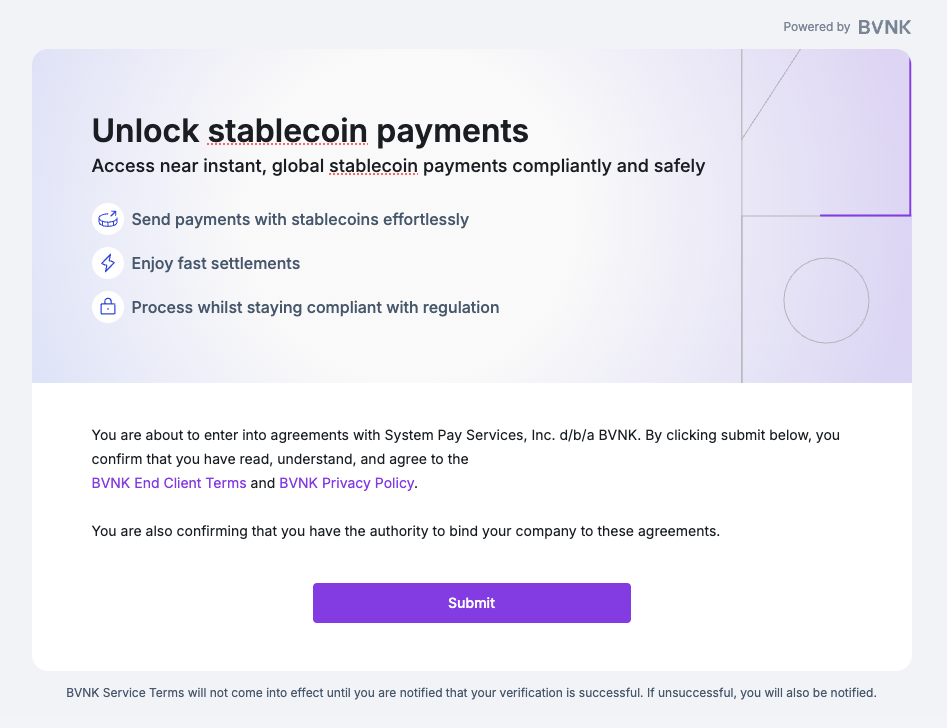 The following guide describes how you can create company or individual customer accounts on the BVNK platform.
