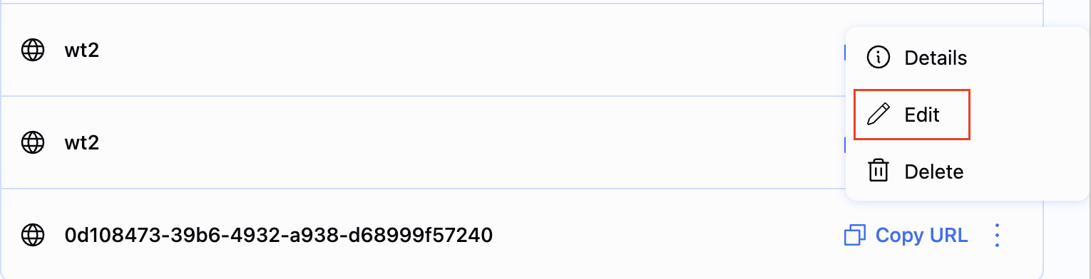 You can specify your Webhook URL during the creation of a Merchant. To add or change the webhook URL for an existing Merchant, go to the Merchant menu, click Edit, and enter the required address. After you click Save, the Webhook URL will be added along with the generated Secret key.