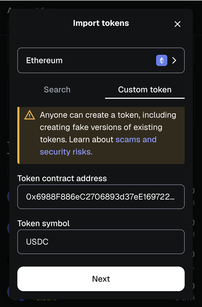 USDT ERC20 is now added to your wallet, and you can complete USDT transactions once you have received test funds.