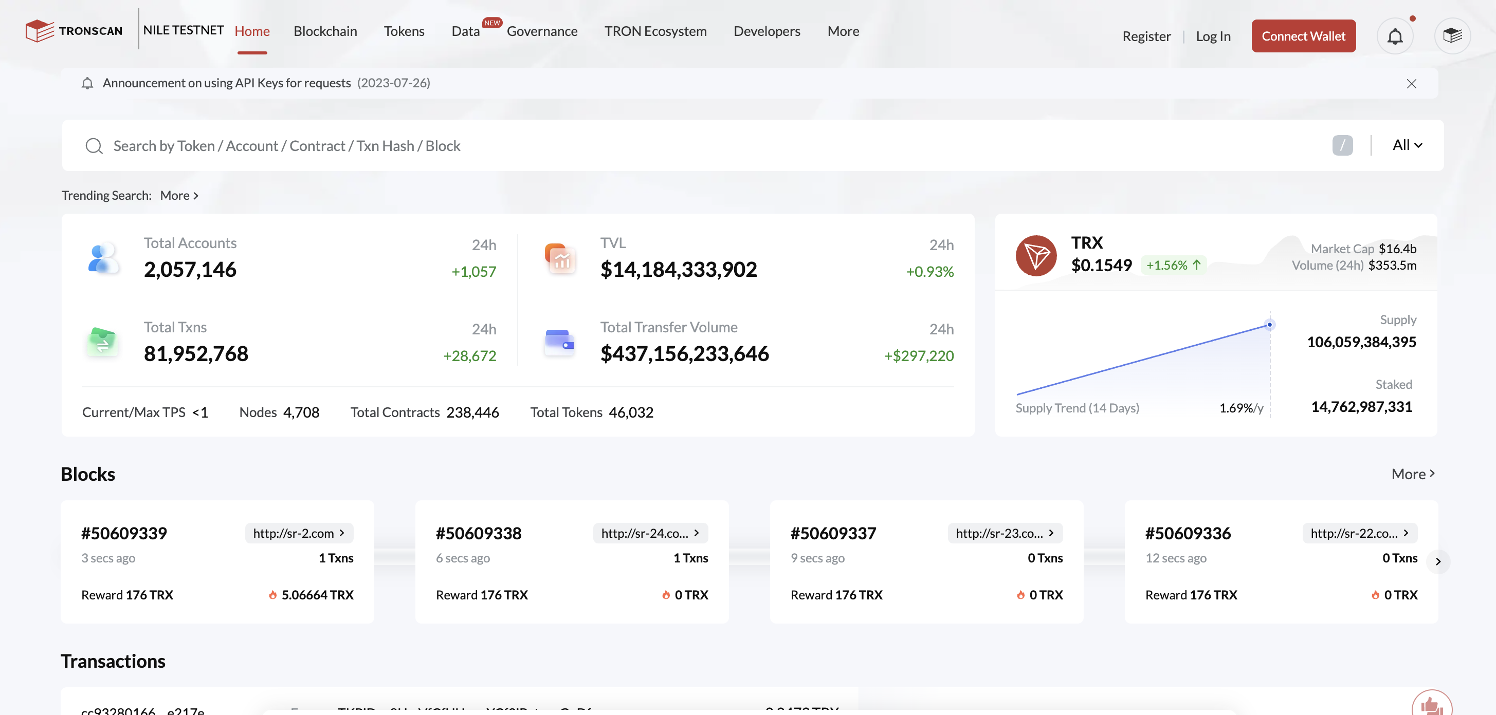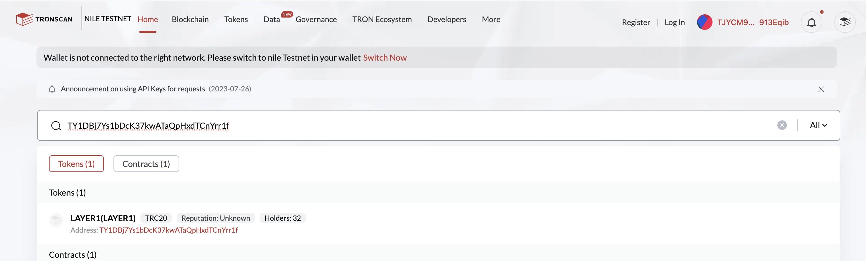 - Go to Nile Testnet and enter your TronLink wallet address.